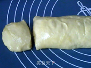 这个改编自君之的肉松火腿面包,去掉表面的火腿和沙拉酱。只不过在最后成型的时候有点傻眼。看看君之在烤盘中的排列,再看看自己的烤盘,好吧,我相信,不是我的模具太大,就是君之的烤箱比较大——三个一横排,亲密而又有度。而自己的,挨挨挤挤,局促不已。最后的结果,就好似瘦人穿了胖子的衣裳,肥大而晃荡。如此还不如做成4个,这衣服或许还合身些