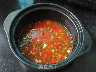 点击查看大图5.番茄丁和葱粒中加番茄酱、盐、少许胡椒粉拌匀,加一杯热水;