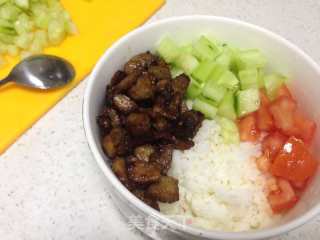点击查看大图6.待烤肉好了之后,把菜全都铺到米饭上,一顿荤素齐全的正餐就做好啦!拌拌开吃吧~~