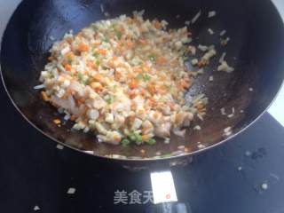 点击查看大图8.放剩米饭,炒到米饭菜融合,用铲子铲碎大的米饭块,这一步应该提前完成。