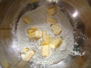 点击查看大图2.冷藏黄油切小块,放入低粉中。
