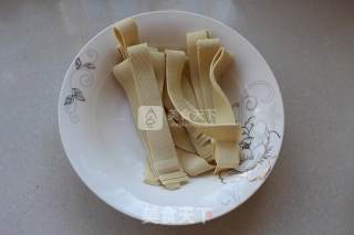 点击查看大图5.豆皮切一厘米左右宽的长条;