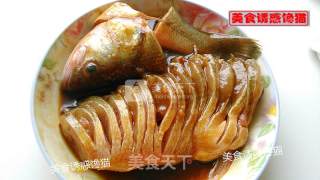 点击查看大图1.买鱼时,让鱼贩清理鱼腮,不要开腹,拿回来清洗干净,切下鱼头和鱼尾,从鱼头切口处把鱼腹里面的东西掏洗干净,要保持鱼肚子的完整。