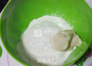 点击查看大图1.先取151g面粉放入碗内,接着放入57g油和62g的水,将其搅拌均匀然后揉捏成一个团,这个面团要稍微软一点,然后放一旁醒发30分钟,醒发完毕后,将酥油放到擀平的面皮上包起来,然后擀均接着切成小块,揉捏成小圆后用擀面杖擀平即可