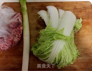 点击查看大图3.这个时间我们可以和馅,首先准备好食材。主要的就是猪肉白菜和大葱,切碎备用。