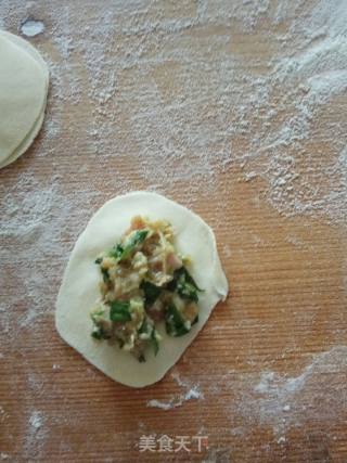 点击查看大图10.把馅子放上,要摊开,不能直接一团,这样包的水饺容易熟