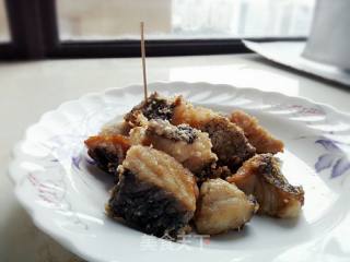 可是伟大的母爱总是让人猝不及防,这道麻麻自主研发的炸粉鱼终于彻底攻克了我严防死守的胃口。柔韧滑嫩的鱼皮衔着薄薄的油脂包住去骨后紧实绵密的鱼肉,再裹上一层喷香酥皮,腥气一扫而光,每次大口咬下都只管尽情享受油脂和肌肉纤维流连齿颊的满足,而不必担心淡水鱼多刺带来的尴尬,再加上麻麻贴心的切成肉丸大小的外型,捏起牙签,一口一个,时至今日仍时常让亲爱的舌头君陷入甜蜜的回忆不能自拔……苍天有眼,早睡早起的小橘儿(其实是广场舞大喇叭吵醒的好不好)逛早市赫然发现鱼摊居然有剔骨的胖头鱼腩卖,果断下手全收了!!!后面那个大妈你别瞪我,毕竟小女子今天的午餐晚餐零嘴全靠它了