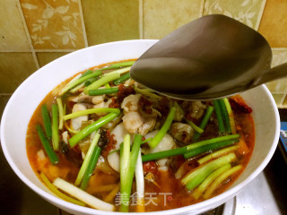 点击查看大图12.加入葱段和一勺辣椒酱