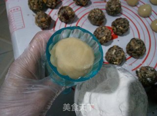 点击查看大图12.取一面团手掌心中按扁,放入五仁内馅。