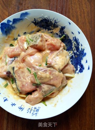 点击查看大图3.将第一步准备好的料放入鱼块里,抓拌均匀,腌制30分钟以后。这一步不需要太多的淀粉,少许淀粉挂个薄薄糊就可以了。