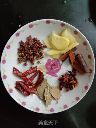 点击查看大图1.准备配料:生姜切片,花椒、八角、桂皮、香叶洗净,干辣椒切段。