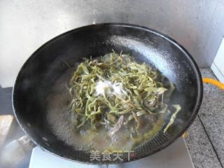 干扁豆丝是秋天晾晒的干菜,把新鲜的扁豆切丝,通风阴干晾晒而成。晾晒后的扁豆丝和新鲜的扁豆已经不是一种食材了,无论口感、味道、烹制方法都发生了变化。一般烹制这种晾晒后的干菜,最好和肉类食材搭配。
