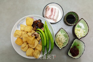 点击查看大图1.主料:豆腐泡150克、五花肉60克、香菇10朵(提前泡发好)、辣椒5根调料:郫县红油豆瓣酱1茶匙、生抽1茶匙、老抽1茶匙、蒜末1茶匙、葱末1茶匙、姜末1/3茶匙、料酒1茶匙、白糖1/3茶匙。