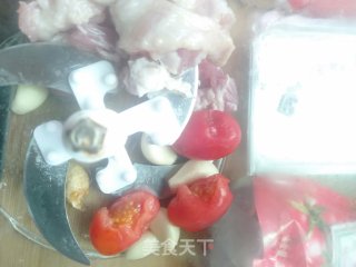 点击查看大图2.我们把小番茄准备五个去皮三个。和五花肉,姜蒜。洋葱打成肉末。