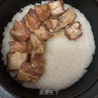 点击查看大图7.米饭煲至水份干了,铺上腌制入味的肋排,淋上腌制排骨的汁。