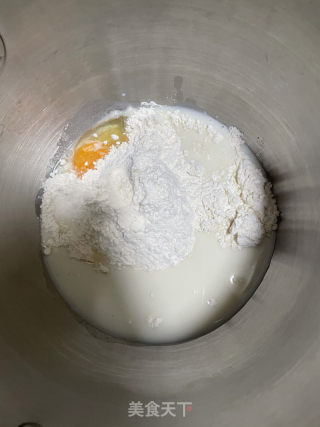 点击查看大图15.除黄油外的面团材料称重,放在厨师机搅拌桶中。