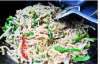 这道南昌炒粉勾起我对南昌的美好回忆,我在南昌上学工作了8年多,那里的大街小巷都留下我的无数个脚印。南昌的早餐:拌粉、拌面、炒粉、粉面、炒年糕、肉饼汤。非常有特色!非常好吃!刚米芽提了意见在南昌吃的南昌炒粉确实是放:肉丝、大蒜子、豆芽或小白菜、不过我发现这的豆芽有药味(应该是用了催熟剂)所以我从来不买豆芽吃,上回做的银芽两吃还是买人家农村自己发的(但这个不是每次都能买到要碰的),所以我就按家里的材料就地取材,味道一样不错哦!
