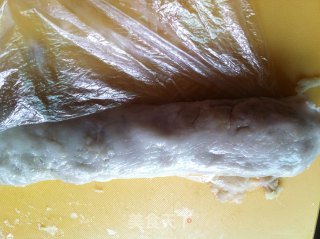 点击查看大图5.蒸好后的糯米用包好保鲜袋的擀面棍擀好(这时候刚蒸好的糯米比较粘,可用点食用油抹抹)