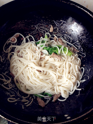 点击查看大图5.下入过完冷水的米粉,加入蚝油、生抽、盐、糖炒匀.出锅前淋入几滴香油.