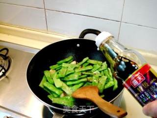 点击查看大图8.把扁豆炒匀后,倒入少许鱼露翻炒。
