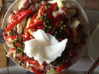 点击查看大图3.鸡枞切好,码放在碗里,然后是切好的大蒜,新鲜辣椒(辣椒最好是辣味足的),新鲜的花椒,这些都码放好以后,放上一勺猪油,然后就可以上锅蒸