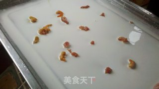 点击查看大图3.把猪肉切成小片加上花生油、酱油、少许糖、再加上生粉,均匀搅拌。把虾仁清洗干净。准备待用