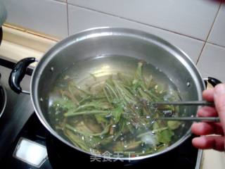 点击查看大图6.锅中水烧开关火,然后快速放入香椿芽,汆烫5秒钟捞出。