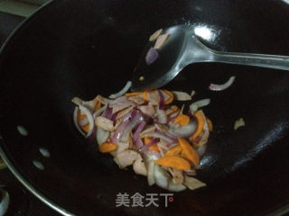 1胡萝卜、山药去皮洗净。2胡萝卜、山药切成菱形片。3锅里放油,六成热放入葱、姜末煸炒。4放入山药翻炒。5加水煮5分钟。6放入胡萝卜、盐翻炒片刻,出锅前放入鸡精调味即可。7盛入盘中,即可享用。