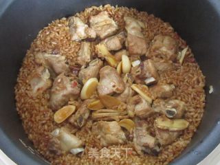 点击查看大图14.把锅中的排骨,连同汤汁,和米一起倒入电饭锅中。