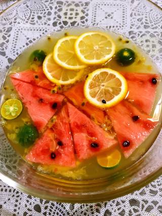1先将百香果,切开取囊,西瓜切片,柠檬切片,小青柠对半切开。2百香果和蜂蜜加水搅拌3再加入切好的西瓜,柠檬,小青柠。口味酸甜,可以加些芒果。按需定制。