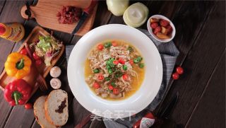 肥牛对于食肉人群是无可挑剔的选择,清晰可见的肉质纹理,分布平均的肉片油花,肉筋肥肉少,香嫩无草腥。细闻起来,还有一股牛油的香味。这大概便是肥牛系列菜火爆的原因之一了。其中,最受欢迎的大概就是酸汤肥牛了。今天小厨要推荐的是一道创新菜“水晶酸汤肥牛”