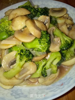 1蔬菜洗净。2口蘑去蒂切片,西兰花切成小朵。3把西兰花,口蘑用开水焯1分钟。捞出沥水备用。4炒锅放油烧热放葱花爆香。5倒入蔬菜,放入蚝油,生抽,白糖翻炒。6出锅前勾入水淀粉,蒜末,香油即可。7成品图。