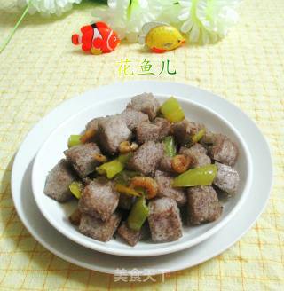 1食材:高粱馒头、青椒(已去蒂去籽清洗切开)、开洋(已泡)2将高粱馒头放在案板上切成小块,待用。3烧锅倒油烧热,下入泡好的开洋和青椒翻炒翻炒。4接着,合入切好的高粱馒头翻炒翻炒。5然后,加适量的盐。6调味炒匀即成。