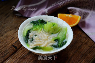 生氽肉丸汤汁清亮味鲜、丸子色白软嫩、清淡爽口不油腻,是营养丰富的美味佳肴。食用菌的特点为高蛋白,无胆固醇,无淀粉,低脂肪,低糖,多膳食纤维,多氨基酸,多维生素,多矿物质。食用菌集中了食品的一切良好特性,营养价值达到植物性食品的顶峰,被称为上帝食品,长寿食品。